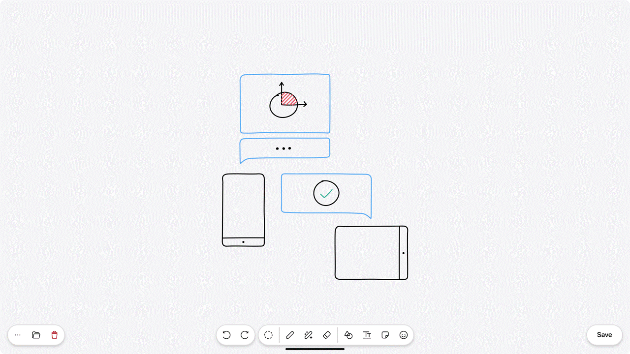No more lost ideas or cumbersome saving. We’ve made whiteboarding fluid and integrated: